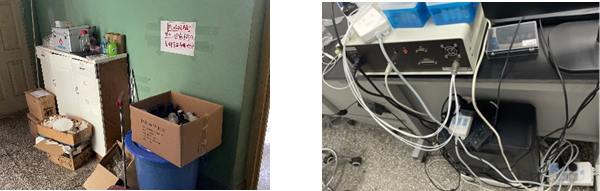 本次还重点检查了前一阶段安全检查中发现问题的实验室的整改情况。检查发现,各实验室基本都能积极针对前期发现的问题进行及时整改。通过本次检查,反映出我院实验室安全状况总体较好,老师学生的安全意识较强,但仍然存在一些需要改进之处。部分实验室存在危化品柜用完未及时上锁、使用插线板不规范、电吹风等电器使用完毕未及时拔电源插头、实验室出入记录不完整、实验室杂物、废弃物、垃圾等未及时清理、卫生状况不良等现象。针对发现的问题,检查组现场即时督促相关责任人员完成整改,对个别存在突出问题的实验室下发了书面整改通知,并要求限期完成整改。