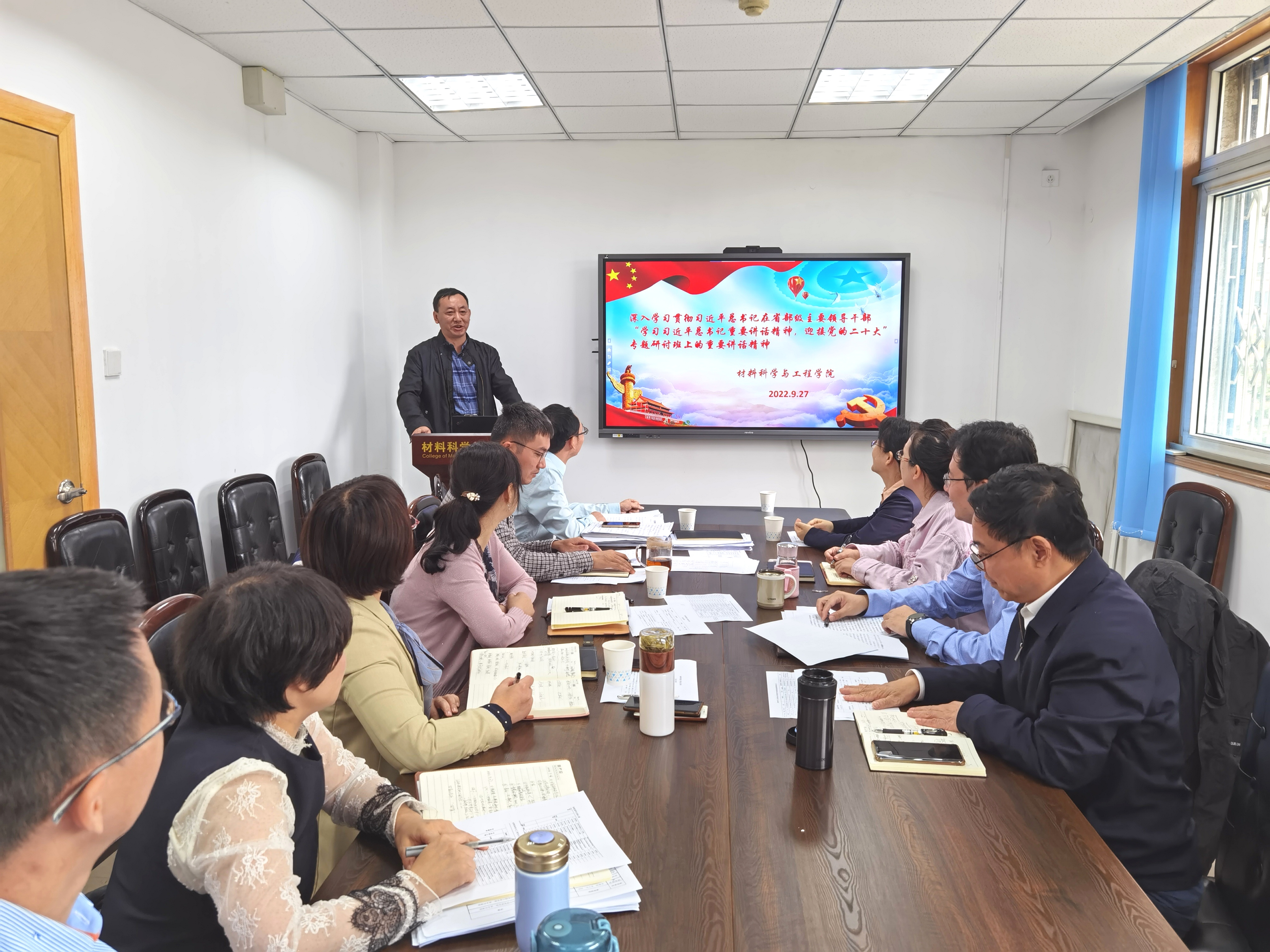 9月27日上午,材料学院党委理论学习中心组开展专题学习会,学习贯彻习近平总书记在省部级主要领导干部“学习习近平总书记重要讲话精神,迎接党的二十大”专题研讨班上的重要讲话精神。学院党委书记徐海鑫、院长刘颖等党委理论学习中心组成员和各教研中心党支部书记参加了本次学习,会议由党委书记徐海鑫主持,党委副书记张晓满导学。
