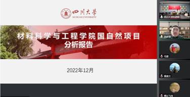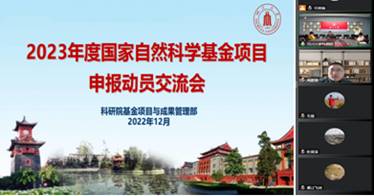 为认真学习贯彻落实党的二十大精神,切实做好2023年度国家自然科学基金申报工作,进一步提升申报书质量,我院于2022年12月01日在望江校区以线上方式召开了国家自然科学基金申报动员会暨经验交流会。会议邀请了学校科研院武梅副院长、龙毅副部长、周小丁科长等作动员宣讲,学院拟申报教师参加了会议,会议由吴家刚副院长主持。