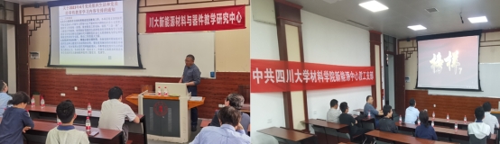 2023年4月14日,新能源材料与器件中心教工支部在望江校区东区二教101教室开展了“永远跟党走,建功新能源”的主题党日活动。本次活动专门邀请到我院在《Nature》杂志上发表论文“All-perovskite tandem 1 cm2 cells with improved interface quality”的赵德威教授做关于“钙钛矿光电材料与器件研究”的学术报告。吴家刚副院长专程参加了本次学术报告。吴院长首先对赵老师入职川大以来取得的系列学术成果表示祝贺,同时号召中心的师生以先进典型为榜样,奋力学先进、赶先进、当先进,勇挑科研重担,在原始独创上下功夫,敢闯无人区,挑战并引领最前沿的科学问题,为学院人才培养和科学研究事业的发展做出更多的贡献,并希望同学们通过这次报告会的学习,坚持“四个面向”,积极投身科技创新,彰显川大青年的精神风貌。