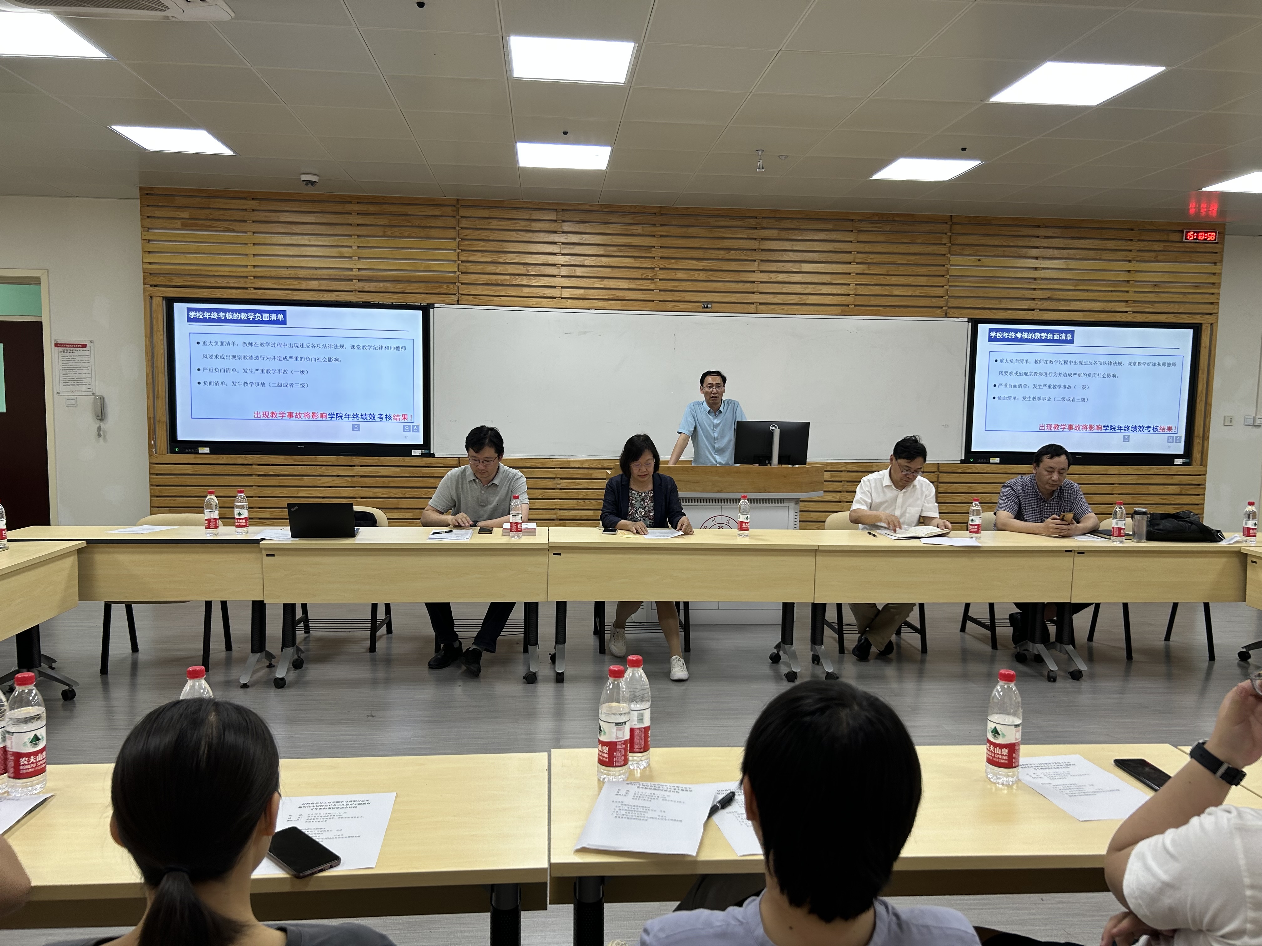 为提高青年教师的教育教学能力,叶金文副院长从教学的文件规定、教学的违规行为、教学事故的分级与处理等方面为青年教师做教学纪律培训。他指出,年轻教师应熟悉学校教学管理规章制度并严格遵照执行。