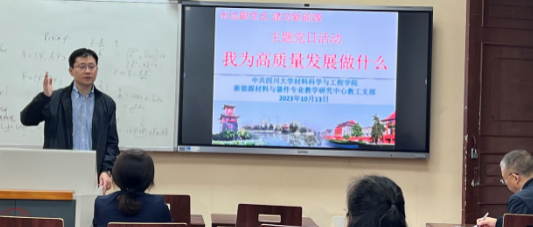 按照学校和学院党委的统一部署,中共四川大学材料学院新能源材料与器件专业教研中心教工支部10月13日在望江校区二教104教室开展了“我为高质量发展做什么”主题党日活动,学院徐海鑫书记参加并指导了本次学习。