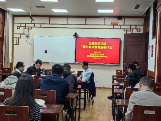 11月10日,行政支部召开了“我为高质量发展做什么”主题党日活动,活动由党支部书记邓英娟同志主持。在进行文件学习后,与会党员老师针对行政支部的特点,在发挥战斗堡垒作用、推动管理服务升级、优化科研组织管理、加强党风廉政建设、提升社会服务能力等方面开展了讨论。张晓满副书记指出,行政支部在做好自身高质量发展的同时,更要积极地为学院一流人才培养、一流学科建设的发展提供高质量的服务,体现行政支部的责任与担当。