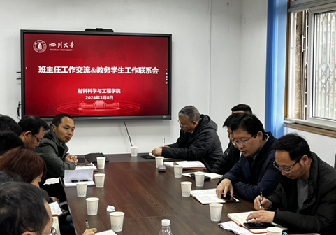 为进一步推进学风建设和班级管理,加强班主任、辅导员和教务员之间的紧密合作,共同打造责任清晰、各有侧重的全员育人体系, 3月8日上午,材料科学与工程学院在402会议室召开2024学年春季学期班主任、辅导员与教务员工作联系会。院党委书记徐海鑫教授、副院长叶金文教授,班主任、辅导员和教务员参加了此次会议。