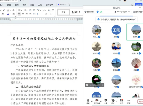 近段时间成都市发生多起火情,尤其是2024年10月31日武侯区黉门后街发生的火灾造成多人受伤。学校领导高度重视消防安全,对进一步加强学校消防安全工作做了重要通知。为了认真学校的安全通知,材料科学与工程专业教研中心于2021年11月2日召开了关于进一步加强学校安全消防工作的会议,中心副主任杨劼人老师组织进行,并讲解了学校相关文件要求。