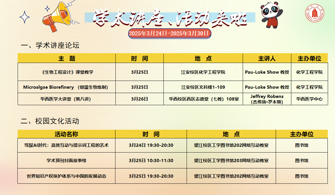 学术讲座论坛及校园文化活动预告(2025年3月24日-2025年3月30日)