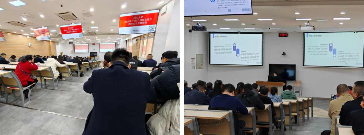 11月25日下午,为进一步强化人员消防安全意识和应急处置能力,提升消防管理水平,保障校园消防安全,材料学院组织消防专兼职干部,于望江校区基础教学楼C座203教室,参加由成都市消防救援支队专家主讲的消防安全专题培训。