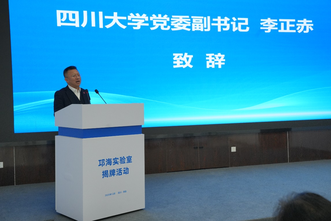 12月17日上午,四川大学参与共建的邛海实验室揭牌仪式在西昌举行。四川大学党委副书记李正赤代表学校出席致辞并为实验室揭牌。凉山州委副书记马辉,州委常委、西昌市委书记王锐,州政府副州长周仕伦,四川省自然资源投资集团党委副书记杨利民,西昌学院党委副书记、院长白洁出席。