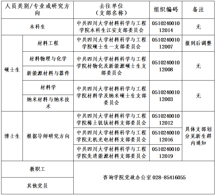 4.中共四川大学材料科学与工程学院委员会2025年各类新进党员组织关系转入支部对照表