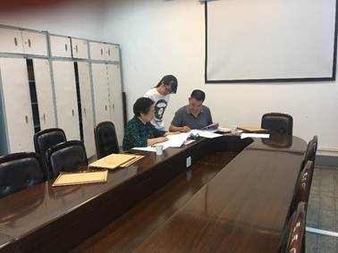 7月4日,赵北君、晋勇两位老师在院办公室对2015级本科毕业生论文情况进行抽查。