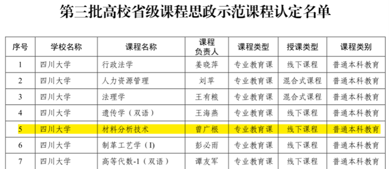 我院《材料分析技术》课程被认定为省级课程思政示范课程