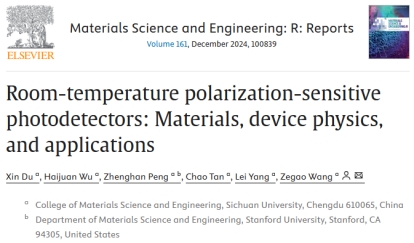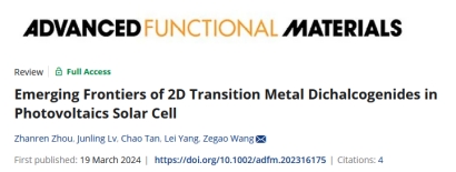 基于此,材料学院2020级本科生周湛人(推免哈工大深圳深造)、吕俊玲(推免四川大学深造)围绕二维半导体材料在结型太阳能电池中的应用开展调研总结;2021级本科生杜芯在偏振光电探测等领域展开了系统调研总结。相关成果以本科生作为第一作者分别发表在Advanced Functional Materials(川大B级)与Materials Science and Engineering : R : Reports(川大A-级)期刊。材料学院2018级本科生彭正瀚(现斯坦福大学攻读博士)参与了相关工作。两个团队的实验研究成果也取得进展,尚在完善整理中。上述成果得到材料学院王泽高教授指导。