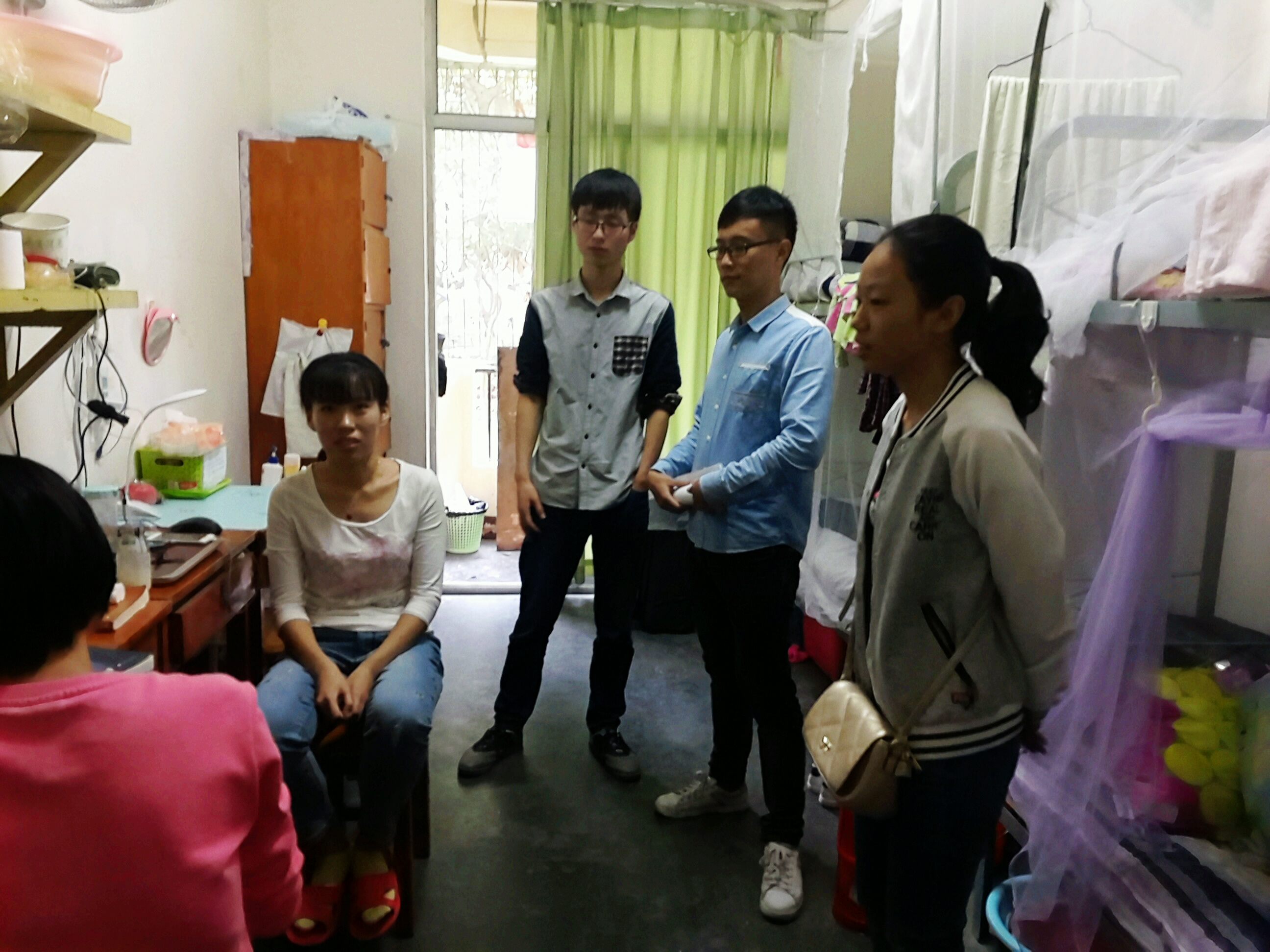 尽管几场秋雨后气温开始渐渐转冷,但是研分会的几位代表还是带着对新生们的热切关心分别走访了北园2舍、北园4舍以及东园6舍。在走访的过程中,研分会的各位代表积极、热情的了解各位16级新同学在学习、生活上的近况,并询问新同学们对于成都的饮食习惯、天气等是否适应。一些来自于北方的16级硕士新同学表示在刚到成都时可能会在饮食和住宿上产生一定的不适应的情况,但是随着时间的推移,也会慢慢的适应的。针对这一部分同学提出的情况,研分会的各位代表也积极向他们介绍自己的经验,希望帮助新同学早日适应新的生活。