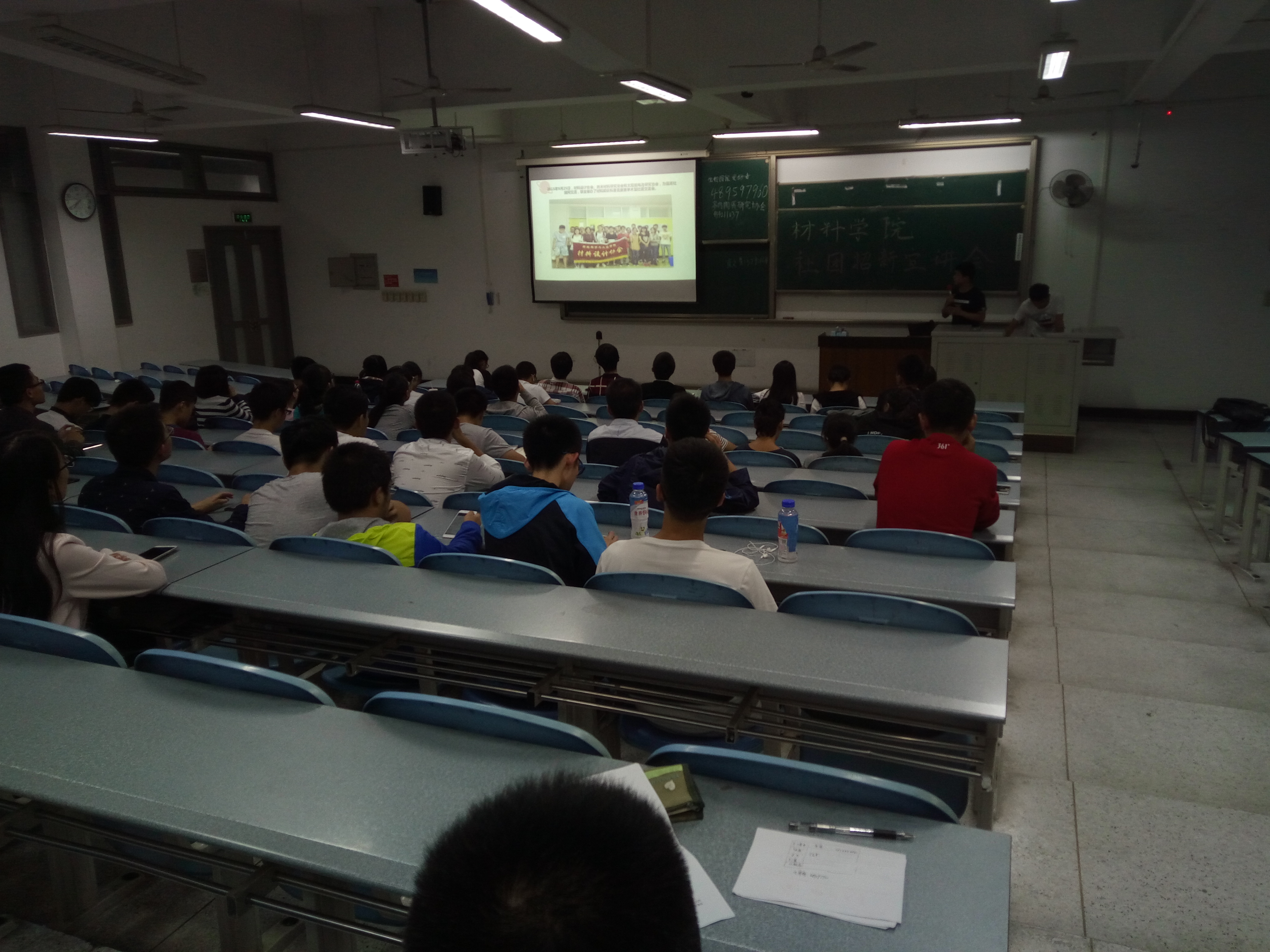 9月23号晚19点20分,材料科学与工程学院社团招新宣讲会正式开始。本次宣讲会到场人员有一百余名材料学院2016级新生及十余名社团会长。