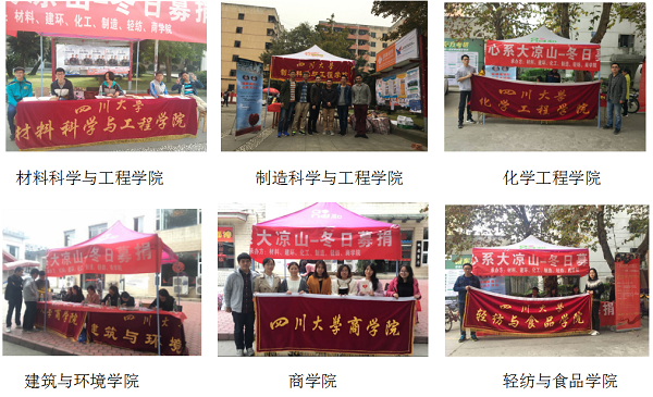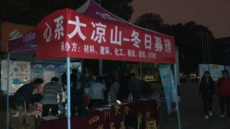 11月4日到11月5日,由四川大学材料科学与工程学院、建筑与环境学院、轻纺学院、制造学院、化学工程学院和商学院六大学院研分会联合主办的“心系大凉山——冬日募捐”活动,在望江校区中心食堂、桃园餐厅、清真食堂三个募捐点同时展开,活动募捐内容包括冬衣、书籍、文具用品等,旨在帮助凉山州贫困学生及其家庭改善生活条件,希望大凉山的孩子们在寒冬里能少一丝寒冷多一丝温暖。