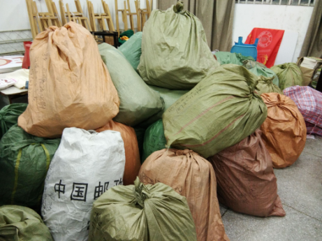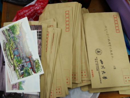 11月6日,在四川大学文华中心,四川大学六个学院的志愿者们将物资分类整理,活动募集到的物资包括冬衣、文具、书籍和明信片等。衣物都是七八成新的羽绒服、棉衣、围巾、手套和棉袜等冬季保暖用品,有些甚至是挂着吊牌的新衣服,还有很多课外书籍以及文具。分类整理后它们将和爱心信件一起被寄往大凉山贫困地区。
