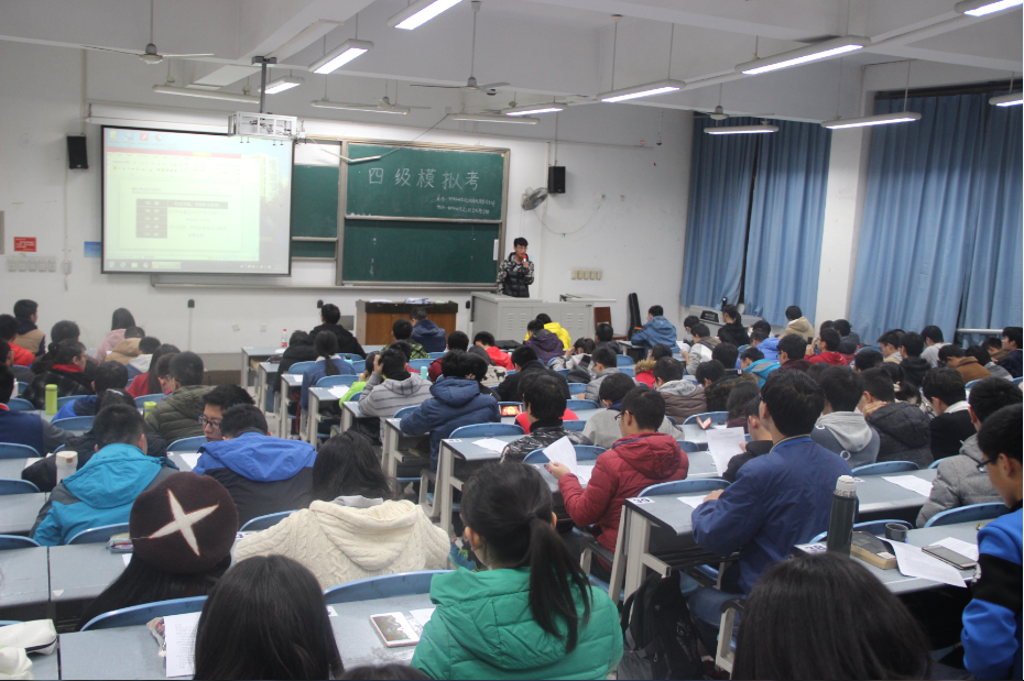 四川大学材料科学与工程学院团委学生会学习部于2016年12月3日晚七点十分在四川大学江安校区综合楼c座103教室组织材料科学与工程学院全体本科生进行四级模拟考试。