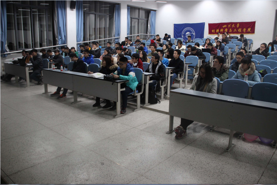 2016年12月4日晚7点,由“挑战杯”四川大学学生科技节组委会和共青团四川大学团委主办,四川大学材料科学与工程学院分科协、高分子科学与工程学院分科协和制造科学与工程学院分科协承办的“挑战杯”四川大学2016年学生科技节之材料设计大赛宣讲会在江安校区综合楼C座403教室顺利举行。与会嘉宾有:2015级材料学硕士杨东睿同学、2015级材料学硕士王博雅同学和2015级材料科学与工程学院团委学生会学生学术科技协会执行部长范帅康同学。