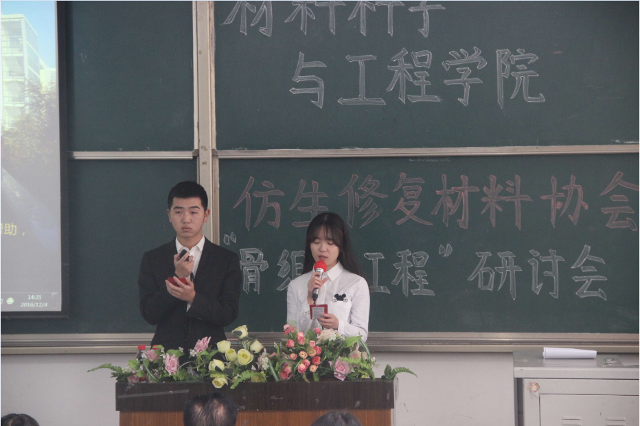 2016年12月4日,由材料科学与工程学院学生学术科技协会、材料科学与工程学院仿生修复材料协会以及建筑与环境学院生物力学研习社联合承办的主题为“骨组织工程”的研讨会在江安校区综合楼C座203教室如期举行。材料科学与工程学院院长尹光福教授作为嘉宾参加了本次研讨会。