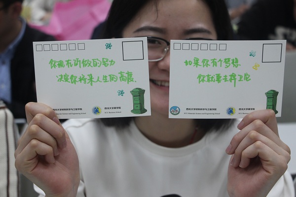 2017年4月14日晚19:00,由四川大学研究生会主办,材料学院和商学院研究生分会承办的明信片涂鸦活动在四川大学商学院206教室成功举行。此次活动的目的是让同学们以明信片的形式,将生活中发现的美好,或者自身经历中的体会,随心的涂鸦到明信片上,为山区的孩子送去鼓励和祝福,用才华展示爱心。活动一经宣传即得到广大同学的积极响应和参与,大家纷纷报名,都想为远在山区的孩子们送去关怀。