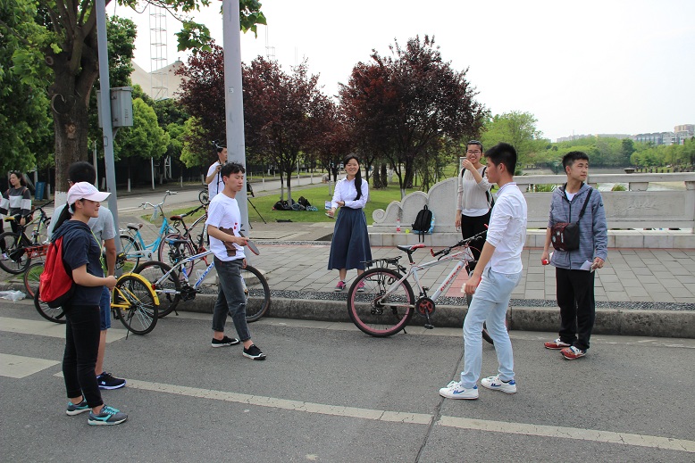 第一关是在艺术学院踩报纸。每组选手们绞尽脑汁,使尽浑身解数,或搂或抱,或跳或靠,终于每组四到五人全部站在了一张报纸上。