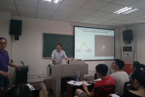 游凌冲教授首先对美国杜克大学的基本情况进行了介绍,之后又围绕其研究的内容“合成生物学和生物材料”进行了详细深入的讲解,整个报告围绕游教授实验室目前的研究方向、研究机理及具体应用展开。包括人体内的细菌的重要性,大肠杆菌的工程化,基因路线控制细菌的翻译转录行为以及浓度控制自裂解、细菌组装穹顶结构(具体应用)-压力感受器等。游凌冲教授的讲解深入浅出,通俗易懂又充满乐趣,在座的同学们都获益匪浅。讲座进行过程中,在座的同学纷纷就有关杜克大学的招生要求、招生情况、奖学金申请以及研究内容中感兴趣方面的相关问题热情提问,游教授也对每一位同学的问题进行了仔细的回答。在这一问一答的过程中,大家都相互交流观点,同学们从中不仅进一步了解了关于杜克大学的有关情况,更对游凌冲教授实验室的研究内容和方向有了深入的认识。最后游教授更是留下了自己的邮箱,希望与川大的同学们有进一步的沟通和交流。