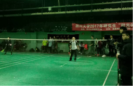 2017年11月25日星期六,四川大学2017级“阳光体育”羽毛球联赛圆满结束。本次联赛由四川大学校学生会体育部主办,材料学院协办,旨在加强川大各学院之间的交流,激励老师同学们增强体质,丰富我们的课余生活。其中材料学院朱达川老师和黄雪飞老师参加了老师单打组,文豪同学参加了男子单打组,刘欢和张菲参加了男女学生混双组。