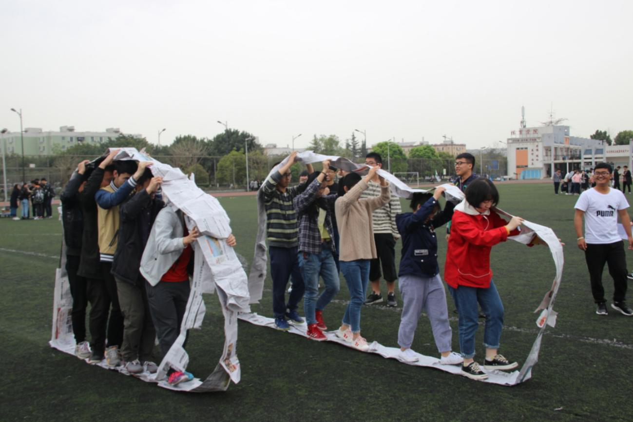 此次素质拓展活动包括四个项目:女孩的心思你别猜,疯狂的报纸,保卫气球,拼命三郎接力跑。四项游戏积分前三支队伍将每人获得一个小奖品。比赛一开始,同学们便迅速进入状态。进行女孩的心思你别猜比赛时,选手们依次使用身体语言向下一位同学解释题目,各种各样的浮夸动作使得比赛场上掌声不停,笑声不断。保卫气球当属最为激烈的比赛,每个支部派3人,每人双脚各绑4个气球,在规定范围(一个篮球场)内,踩爆其他支部的气球,选手们使出浑身解数,激烈角逐,将紧张刺激的气氛推向高潮。于11:30,活动圆满结束。