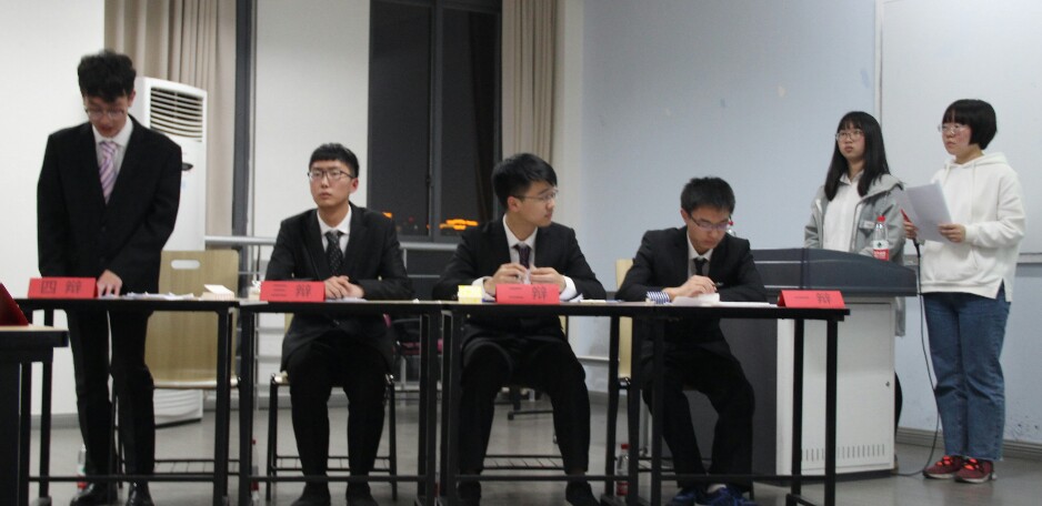 辩论赛开始之初,由正方一辩陈述论点,反方四辩对正方论点进行提问,再换反方一辩提出论点,正方四辩提问,后由正反方二辩进行申论,对方三辩进行提问。完成了两轮的提问与回答之后,由正反方三辩进行总结。之后就进入了最为激烈的自由辩,双方辩手不断的起身、坐下、问问题、回答问题,把整场比赛推向最激动人心的时刻。自由辩结束之后,再由反方四辩与正方四辩进行最后的总结。然后由评委进行投票与点评,公布比赛结果。