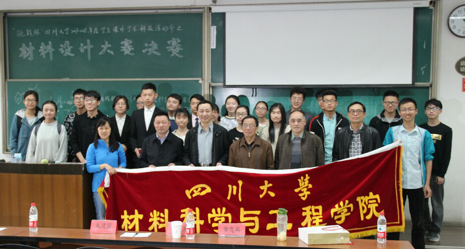 2018年3月25日14:00,由“挑战杯”四川大学学生科技节组委会、共青团四川大学委员会主办,四川大学高分子科学与工程学院委员会、材料科学与工程学院委员会和制造科学与工程学院委员会共同承办的“挑战杯”四川大学2017-2018年度学生课外学术科技活动节之材料设计大赛活动在四川大学江安校区第一基础教学楼B座104室顺利举办。本次活动邀请到的评委及嘉宾有材料科学与工程学院朱建国教授,材料科学与工程学院金材系主任黄维刚教授,材料科学与工程学院材料系朱基亮教授,材料科学与工程学院无机生医系黄忠兵教授,材料科学与工程学院党委副书记张晓满书记。此次材料设计大赛旨在引导广大学生关注材料专业前沿信息,关注新材料、新技术的发展,引导学生深入材料领域,发挥同学们的聪明才智,积极探索。