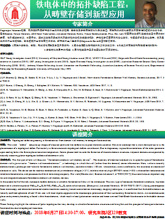 讲座题目:Topological defect engineering in ferroelectrics: from domain wall memory to emergent functionalities.