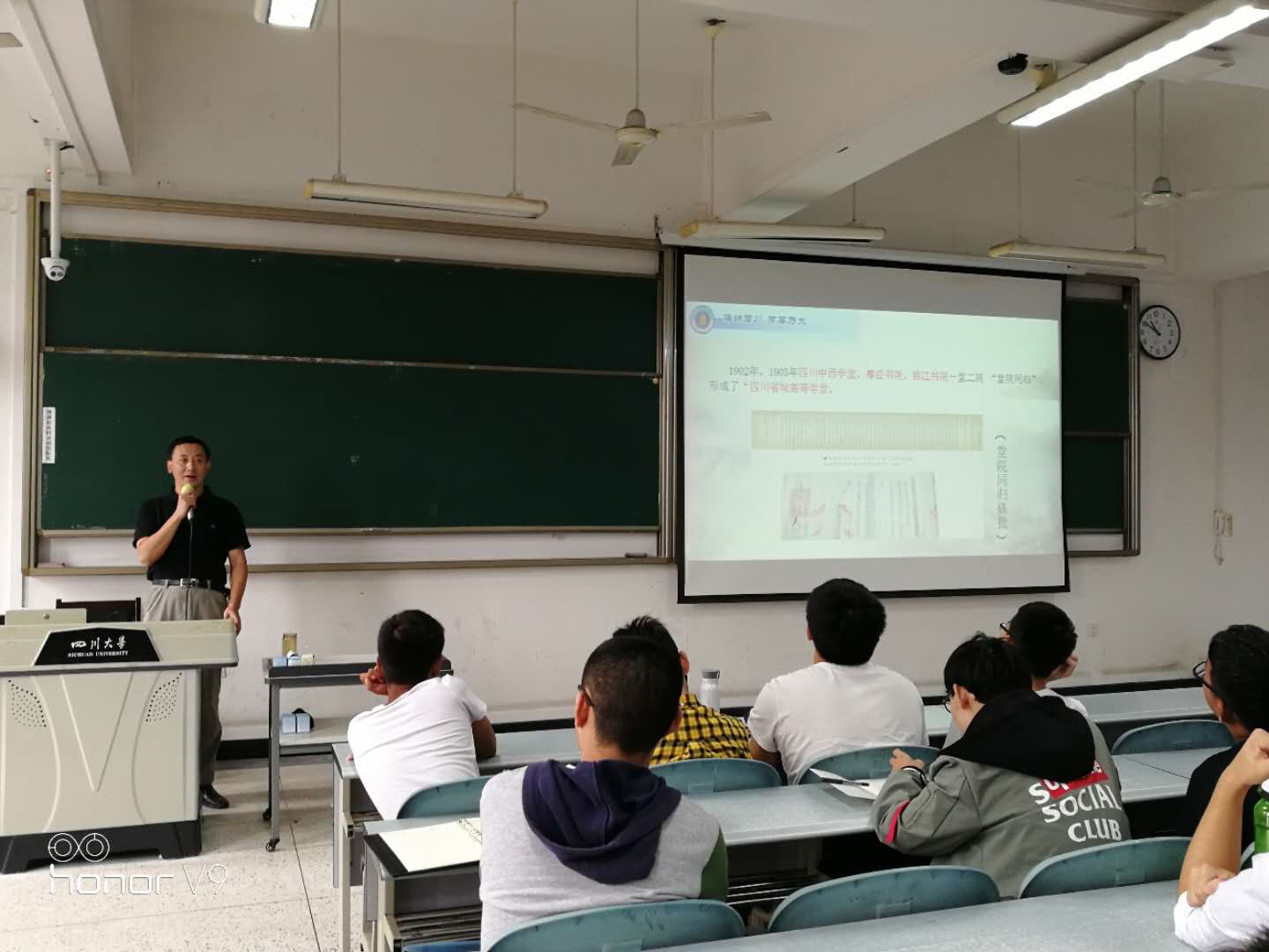 2018年9月12日,材料科学与工程学院党委副书记张晓满教授给材料学院新生做思想政治教育。