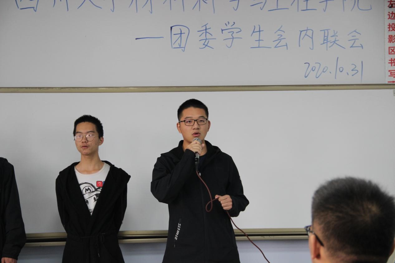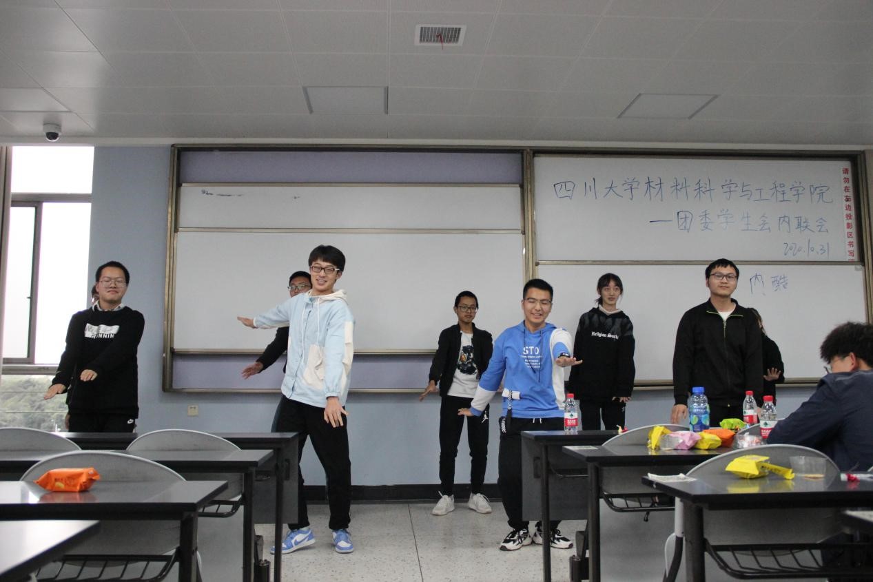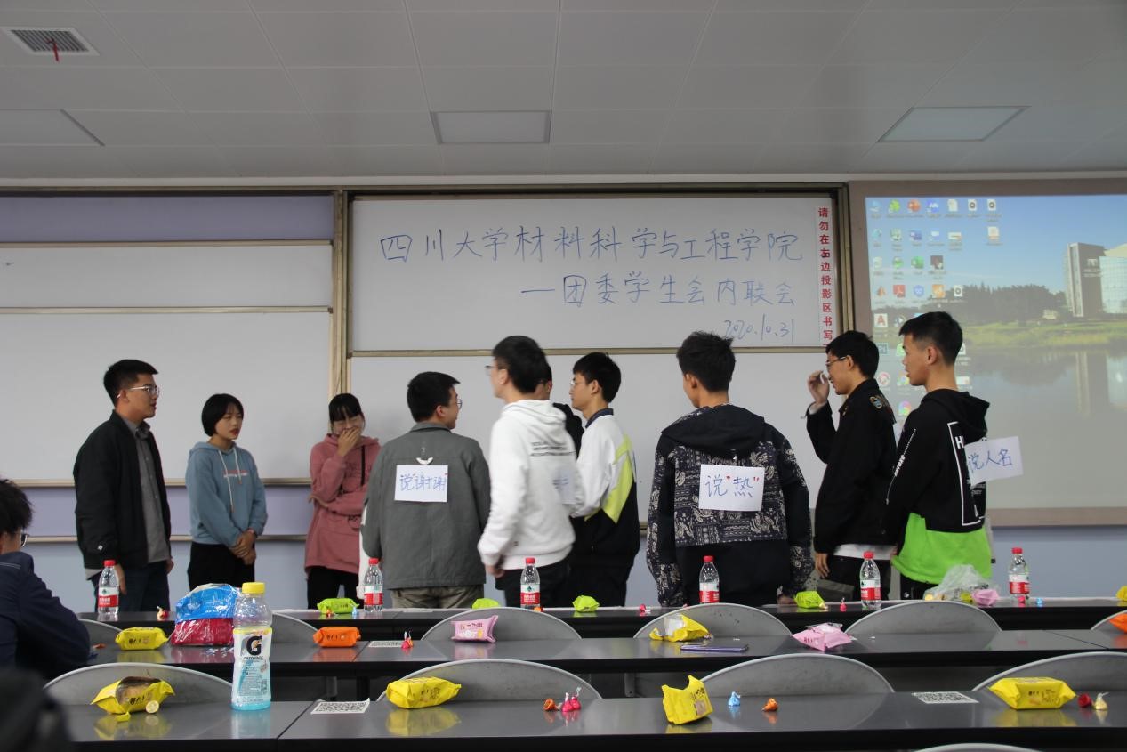 2020年10月31日下午,材料科学与工程学院团委学生会内联会于一教b407隆重举行。参与本次活动的有院团委副书记肖闳畅﹑学生会执行主席马子涵﹑各部门部长副部长和2020级全体学生会干事。本次内联会的活动流程分为:学生会代表致辞、部门干事介绍、部门节目展示、中场游戏以及压轴游戏。