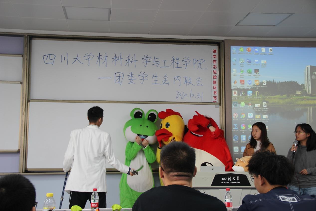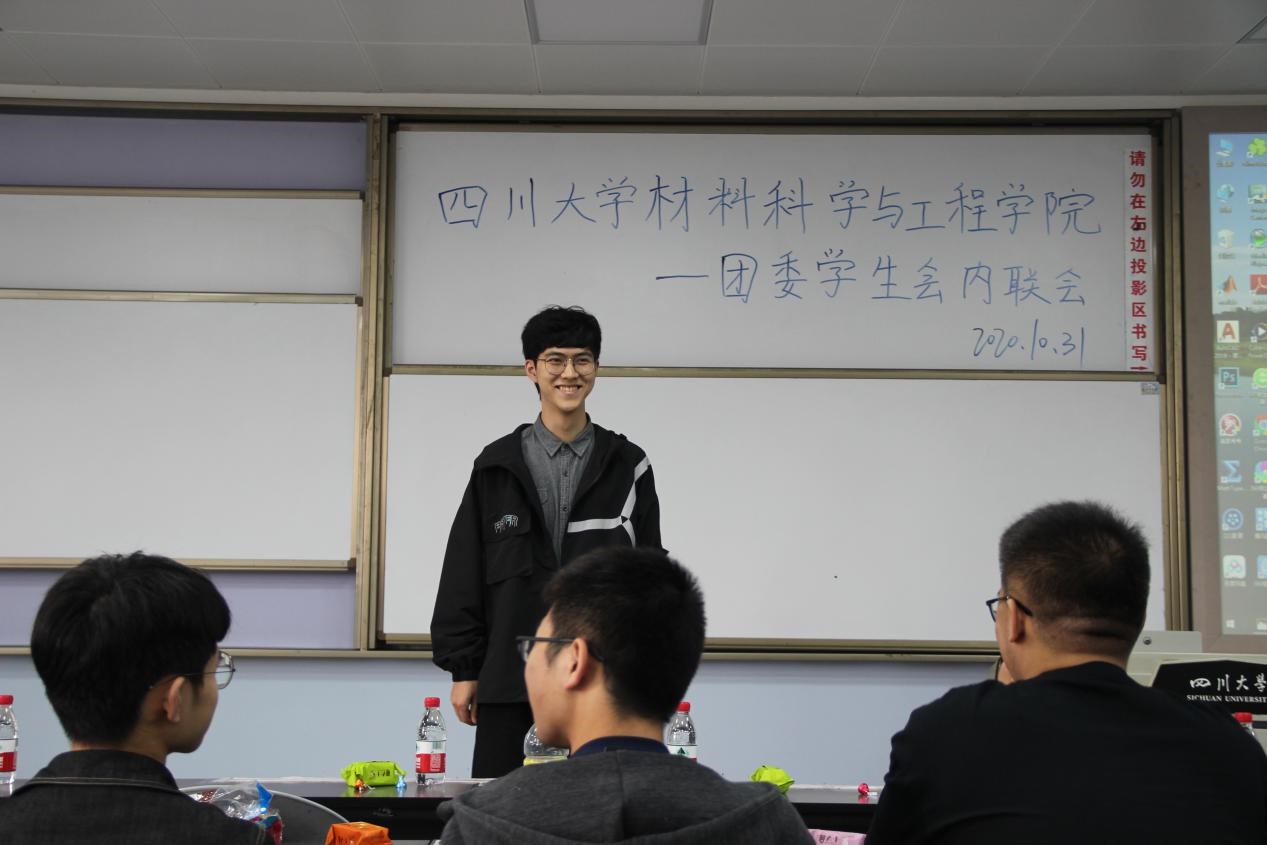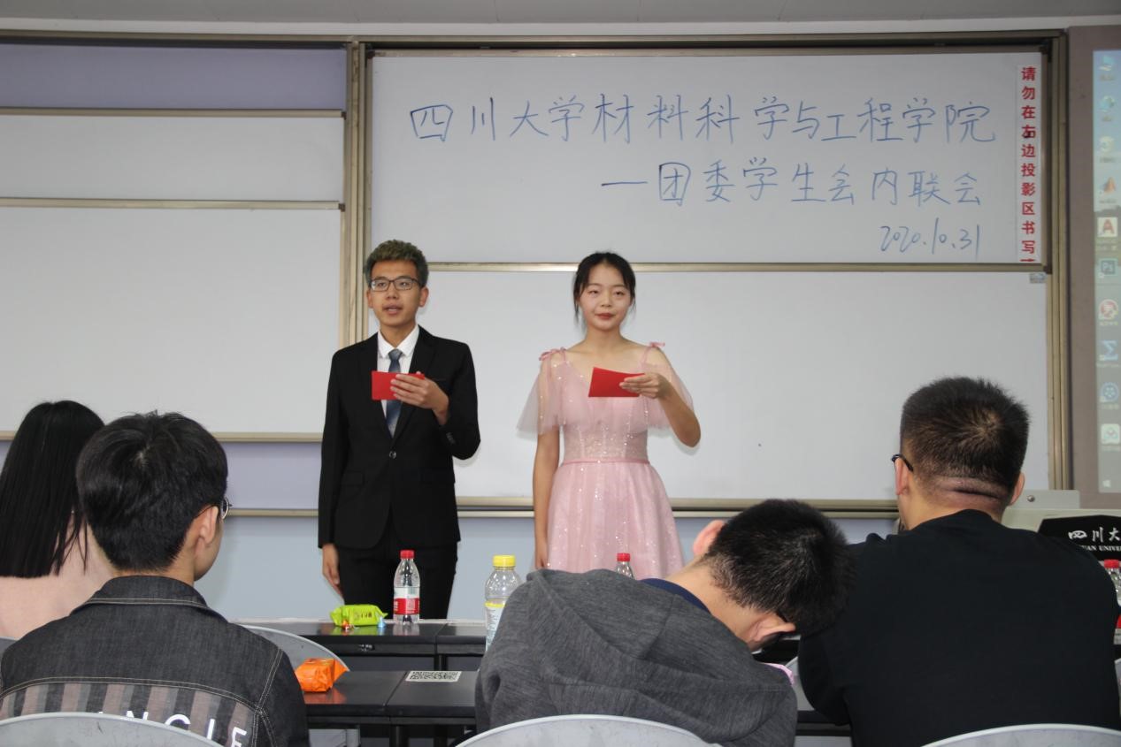 2020年10月31日下午,材料科学与工程学院团委学生会内联会于一教b407隆重举行。参与本次活动的有院团委副书记肖闳畅﹑学生会执行主席马子涵﹑各部门部长副部长和2020级全体学生会干事。本次内联会的活动流程分为:学生会代表致辞、部门干事介绍、部门节目展示、中场游戏以及压轴游戏。