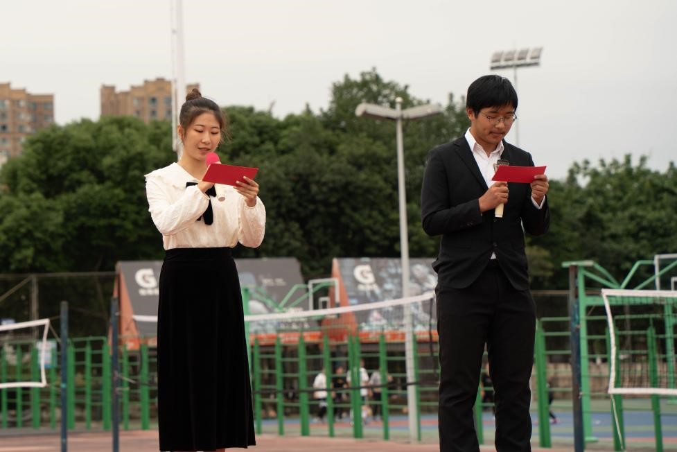 在主持人何昊威和蔡情二位同学激情饱满的开场白后,材料学院2021级运动会正式拉开帷幕。入秋的风微冷,同学们心中却有着少年的热情。开幕式首先介绍的是出席此次运动会的嘉宾:材料学院团委书记、2020级辅导员余鹏飞老师,2021级辅导员韩纪梅老师,材料学院团委副书记宋志诚,材料学院团委学生会副主席余晓沛。随后裁判员代表司榕霞同学,运动员代表王鹤同学庄严宣誓。鹏羽冲天,葵心向日,运动员们蓄势待发,运动场上满是激情昂扬,奋发向上的青春气息。