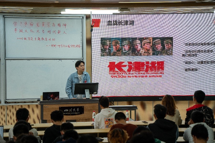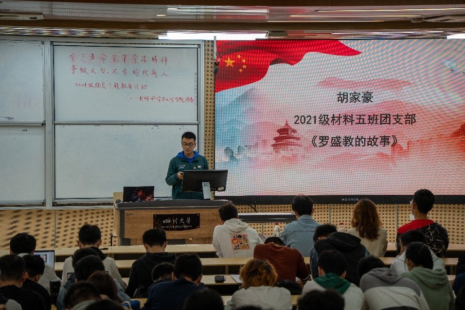 2021年10月16日14时,主题教育活动在四川大学江安校区综合楼C座207拉开序幕,出席本次活动的有:青年讲师团成员于世博、材料科学与工程学院团委副书记宋志诚、学生会副主席余晓沛、宣传部部长陈奕廷以及2021级全体团员。本次活动主要分为三部分:齐唱团歌、青年讲师团成员于世博进行主题授课、优秀故事分享。