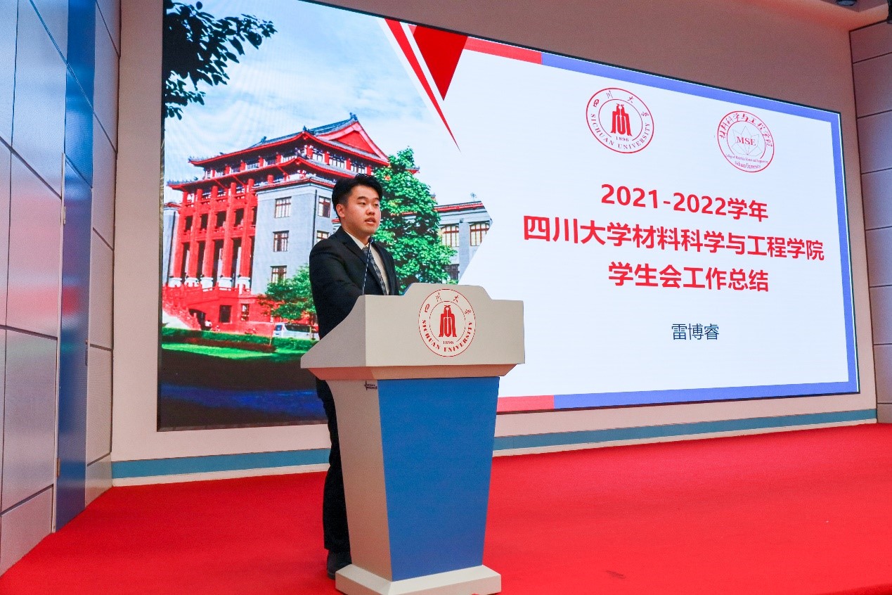 2022625日下午,四川大学材料科学与工程学院第十一届学生代表大会在望江校区汇文楼演播厅顺利举行。学院团委书记余鹏飞老师、研究生团总支部书记罗英建、团委副书记肖闳畅、学生会主席雷博睿等嘉宾出席了本次大会。学生会副主席崔光垚主持本次会议。
